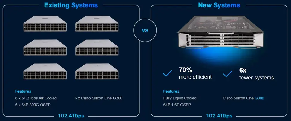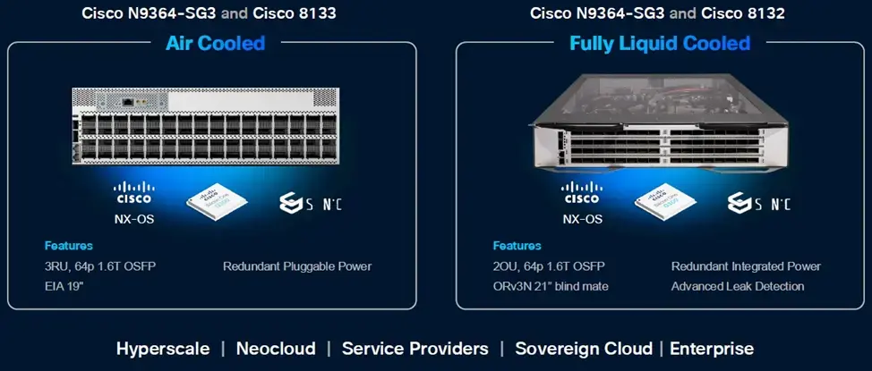 Cisco размещает G300 в нескольких устройствах. Для устройств с воздушным охлаждением G300 используется в Nexus N9364-SG3 под управлением собственной ОС NX-OS компании и в Cisco 8133 под управлением открытой сетевой ОС SONiC.