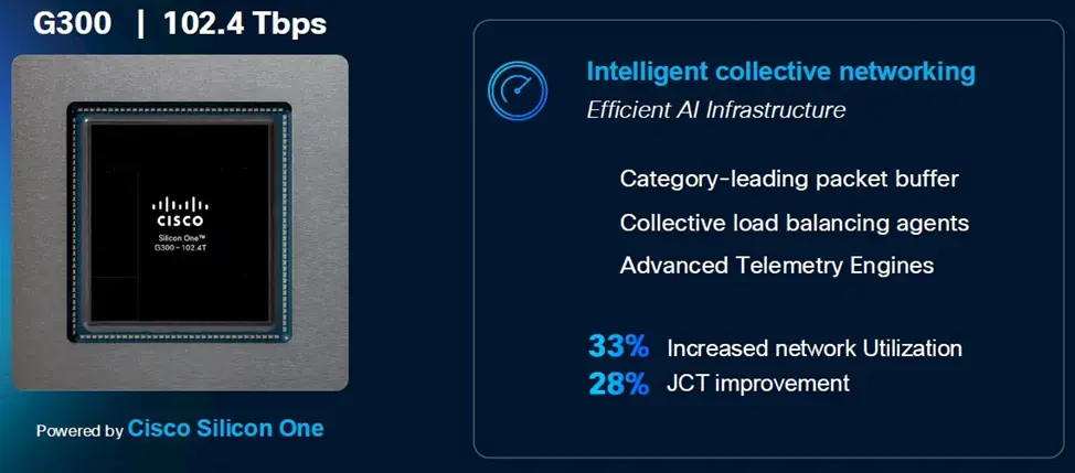 Cisco пока не предоставила технического подробного описания ASIC G300, поэтому мы не можем поделиться блок-схемой чипа или схемами коммутаторов G300. Но у нас есть некоторые основные характеристики производительности и информация от Ракеша Чопры, старшего вице-президента и Cisco Fellow, отвечающего за разработку Silicon One.