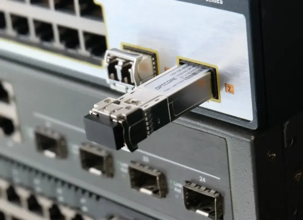Трансиверы/модули — это устройства, которые преобразуют электрический сигнал в оптический и обратно. Они вставляются в коммутаторы, маршрутизаторы и другое сетевое оборудование.