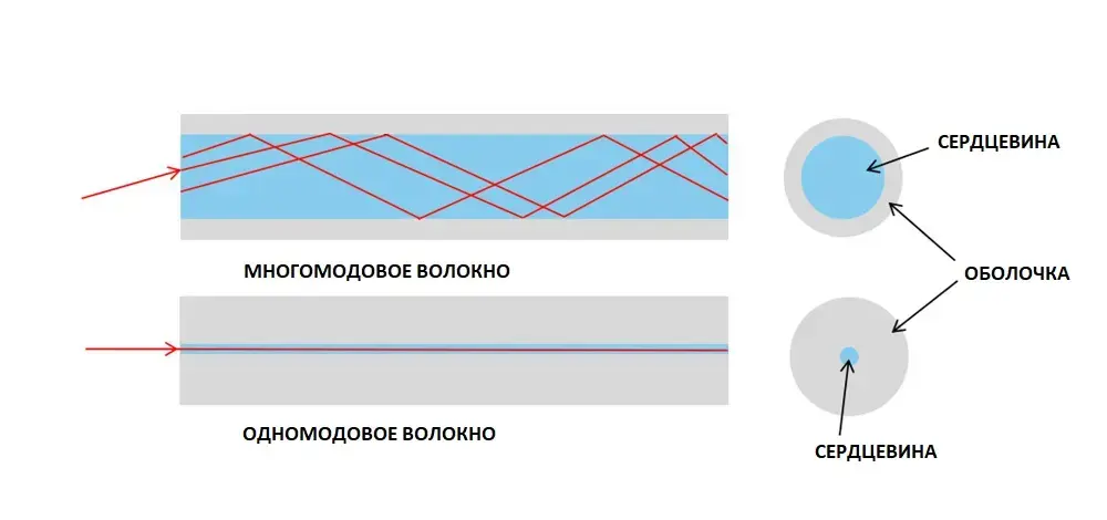 Типы волокон: SMF и MMF