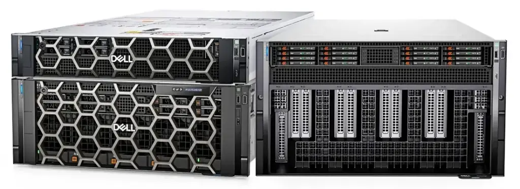 Высокоплотные 4–6U-системы: Supermicro SYS-420GP-TNAR+ 6SFF (2x Intel Xeon Silver 4310, 256GB DDR4, до 6x NVMe/SAS, 8x NVIDIA A100 80GB); Dell EMC PowerEdge XE9680 8SFF (2x Intel Xeon Platinum 8468, 2TB DDR5, до 8x NVMe, 8x NVIDIA HGX H200 141G); NVIDIA DGX H800 640GB (2x Intel Xeon Platinum 8480C, 2TB DDR5, 8x 3.84TB NVMe, 8x NVIDIA H100 640G). |