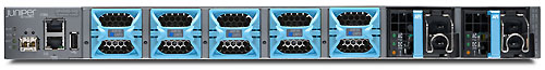 Модели серии QFX5100-48S : коммутатор 10GbE с 48 двухрежимными сменными портами малого форм-фактора (SFP) и SFP plus (SFP +) и 6 четырьмя портами SFP + (QSFP +) 40GbE. QFX5100-48T : коммутатор 10GbE с 48 портами RJ-45 Trispeed (100 Мбит / с / 1GbE / 10GbE) и 6 портами QSFP +. QFX5100-24Q : коммутатор 40GbE , поддерживающий до 32 портов QSFP +. QFX5100-96S : коммутатор 10GbE с 96 двухрежимными портами SFP и SFP + и 8 портами QSFP + 40GbE.
