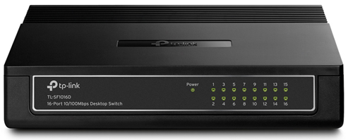 Комплект поставки TL-SF1016D, 16-портовый 10/100 Мбит/с настольный коммутатор Адаптер питания Руководство пользователя