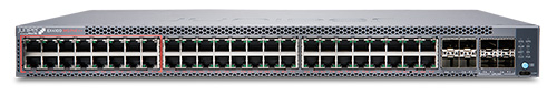 Плотность портов EX4100-48 МП: 16 x 100 М/1/2,5 Гбит/с + 32 x 1 Гбит/с, 4 x 1/10 Гбит/с восходящих линий и 4 x 10/25 Гбит/с пакетных/восходящих линий EX4100-24MP: 8 x 100 М/1/2.5/5/ 10GbE + 16 x 1GbE, 4 x 1/10 GbE восходящих канала и 4 x 10/25 GbE суммирующих/восходящих каналов