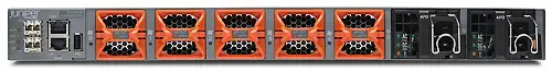 Поддержка интерфейса ACX5048: 48 SFP / 24 меди 1GbE, 48 SFP + 10GbE (72 Вт / отводной кабель), 6 QSFP + 40GbE (каждый может быть настроен как 4 x 10GbE), 3 управления (1 RJ-45, 2 SFP) ACX5096: 96 SFP / 48 медь 1GbE, 96 SFP + 10GbE (104 с отводным кабелем), 8 QSFP + 40GbE (2 можно настроить как 4 x 10GbE), 2 управления (1 RJ-45, 1 SFP)