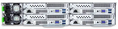 Внешние: 24 x 2,5" с горячей заменой (6 x NVMe на узел) Внутренние: 8 x 2,5 "горячей замены (2 x SATA на узел) (опция) 2 x M.2 (NGFF) / M-Key / 2280 / поддерживает SATA или PCIe x2 |