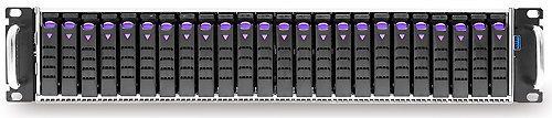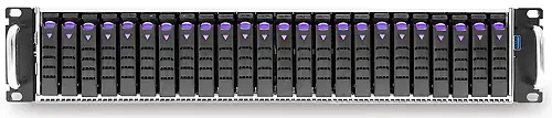 Дисковые отсеки Внешние: • 24 x 2,5-дюймовых диска SATA/SAS3/NVMe (15 мм, передняя панель) • 2 x 2,5-дюймовых диска с горячей заменой (7 мм, задняя панель) Внутренние: • 2 x M.2(NGFF)/M-Key/2280