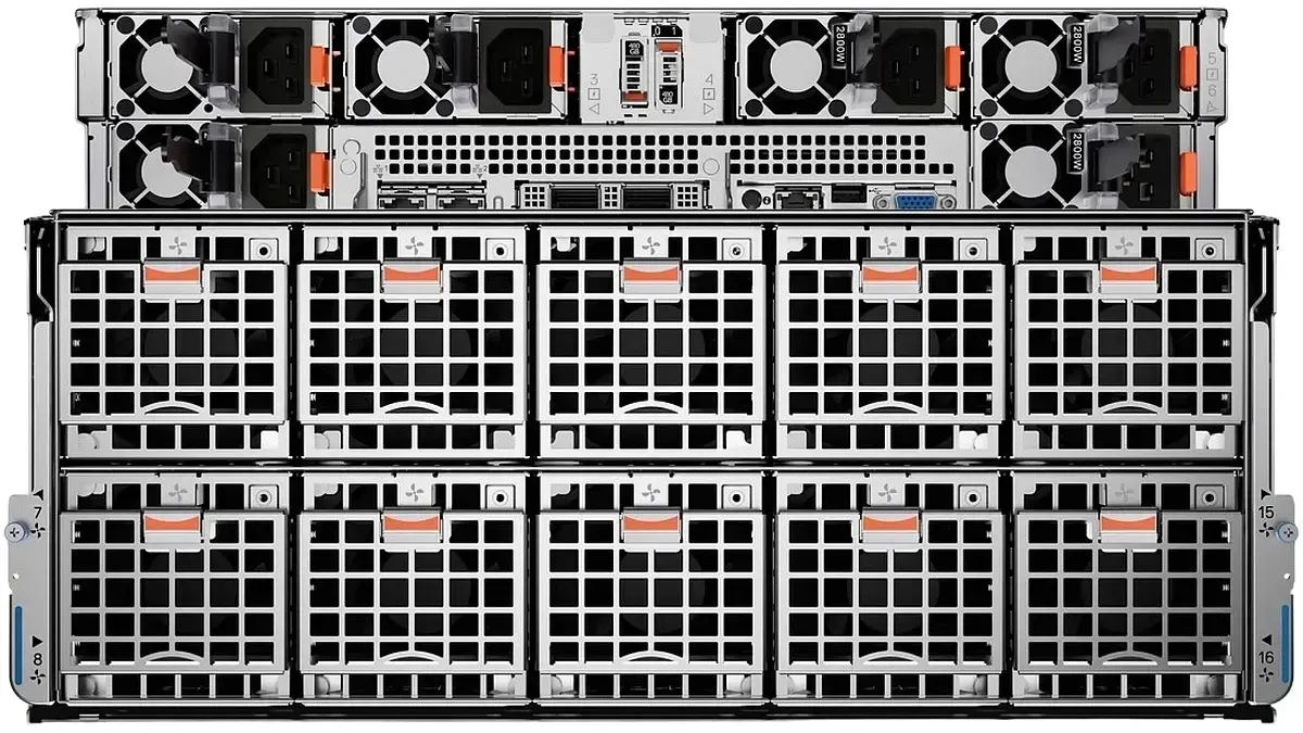 До 6 высокопроизводительных вентиляторов класса gold (HPR), установленных в среднем лотке До десяти высокопроизводительных вентиляторов класса gold (HPR), установленных на задней панели системы (до 12 вентиляторов с Intel Gaudi3) Все вентиляторы имеют функцию горячей замены |