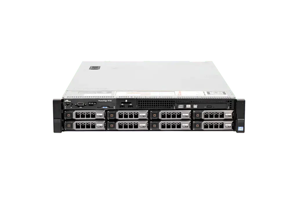 PowerEdge R720 — это флагман Dell среди двухпроцессорных серверов двенадцатого поколения. Модель выполнена в форм-факторе 2U и рассчитана на установку в стойку. Линейка Dell PowerEdge R720 поставляется с процессорами Intel Xeon E5-2600 и, по сравнению с моделями одиннадцатого поколения, отличается значительно улучшенной энергоэффективностью. Новинка получила 24 разъема для модулей памяти DDR3, имеет два установочных места для полноразмерных плат PCI Express и может комплектоваться 10GbE Ethernet-адаптером.