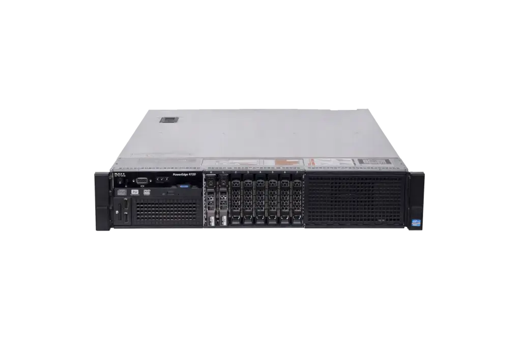 PowerEdge R720 — это флагман Dell среди двухпроцессорных серверов двенадцатого поколения. Модель выполнена в форм-факторе 2U и рассчитана на установку в стойку. Линейка Dell PowerEdge R720 поставляется с процессорами Intel Xeon E5-2600 и, по сравнению с моделями одиннадцатого поколения, отличается значительно улучшенной энергоэффективностью. Новинка получила 24 разъема для модулей памяти DDR3, имеет два установочных места для полноразмерных плат PCI Express и может комплектоваться 10GbE Ethernet-адаптером.