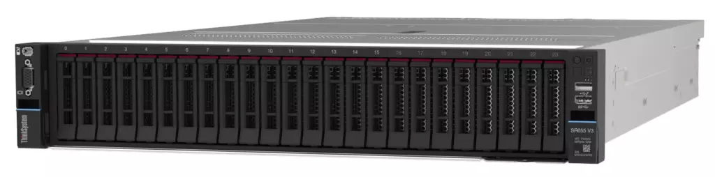 Lenovo ThinkSystem SR655 V3 поддерживает стандартные варианты конфигурации серверного оборудования: выбор процессоров, объёма оперативной памяти, типов накопителей и сетевых интерфейсов.