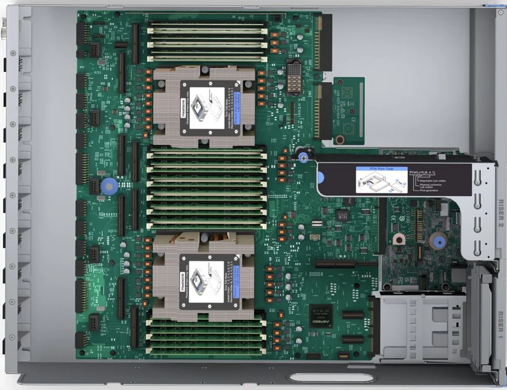 Подсистема хранения данных До 16x 2,5-дюймовых твердотельных накопителей NVMe с возможностью замены без отключения питания До 2x M.2 для загрузки системы (с поддержкой RAID)
