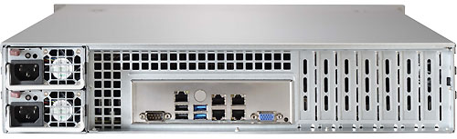 Слоты расширения 8 портов SATA3 (6 Гбит/с) 8 портов SAS3 (12 Гбит/с) 2 порта RJ45 Gigabit Ethernet LAN 1 выделенный порт IPMI LAN RJ45 2 порта USB 3.0 (2 сзади) 4 порта USB 2.0 (2 сзади, 2 спереди) 1 порт USB типа А 1 разъем VGA 2 быстрых серийных порта UART 16550 2 COM-порта (1 сзади, 1 спереди)