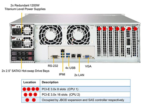 Слоты расширения 3 слота PCI-E 3.0 x16 4 слота PCI-E 3.0 x8 Слоты 2 и 3 заняты контроллером и портом расширения JBOD