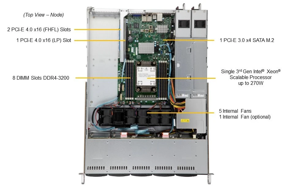 Процессоры Single Socket P+ (LGA-4189) Масштабируемые процессоры Intel® Xeon® 3-го поколения (LGA-4189) TDP мощностью до 270 Вт (с воздушным охлаждением)