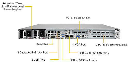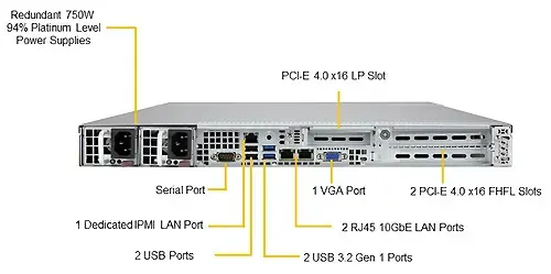 Слоты расширения 10 портов SATA (6 Гбит / с) 1 выделенный порт LAN IPMI с разъемом RJ45 2 порта RJ45 10GBase-T LAN 4 порта USB 3.2 Gen 1 (2 спереди