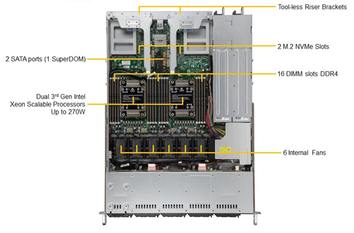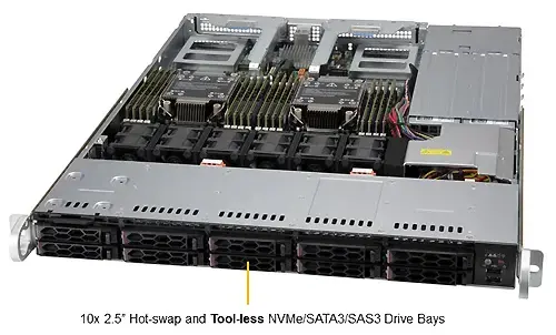 Rack 1U / 1 x Intel Xeon Gen3 / 16 x DIMM 6 ТБ 3DS ECC DDR4-3200: LRDIMM RDIMM Intel® DCPMM / 10 NVMe / SATA / SAS / 2 PSU уровня Platinum на 860 W