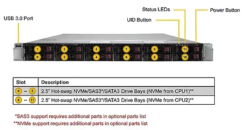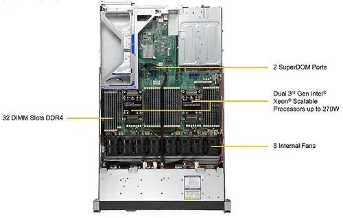 Rack 1U / 1 x Intel Xeon Gen3 / 16 x DIMM 6 ТБ 3DS ECC DDR4-3200: LRDIMM RDIMM Intel® DCPMM / 10 NVMe / SATA / SAS / 2 PSU уровня Platinum на 860 W