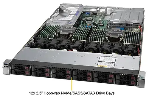 Rack 1U / 1 x Intel Xeon Gen3 / 32 x DIMM 12 ТБ / 12 SFF NVMe / SATA / SAS / 2 PSU уровня Titanium 1200 W