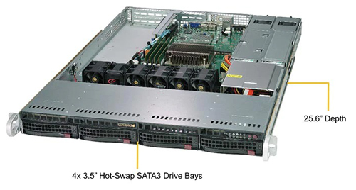 Rack 1U / 1 x Intel Xeon Gen3 / 128 ГБ ECC UDIMM / 4 LFF, / 1 PSU 500 W