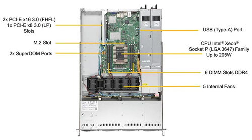 Supermicro SYS-5019P-WTR поддерживает стандартные варианты конфигурации серверного оборудования: выбор процессоров, объёма оперативной памяти, типов накопителей и сетевых интерфейсов.