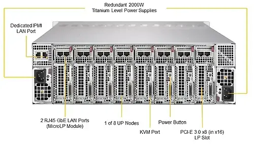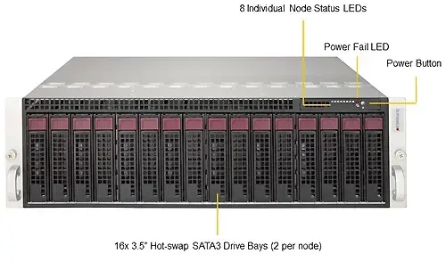 Rack 3U / 1 x Intel Xeon E-2100/E-2200 / 4 DIMM 128 ГБ / 2 LFF / 4 SFF SATA3 / 2SFF NVMe + 2 SFF SATA3 / 2 SFF NVMe + 1 LFF SATA3 / 2 PSU уровня Titanium 2000 W