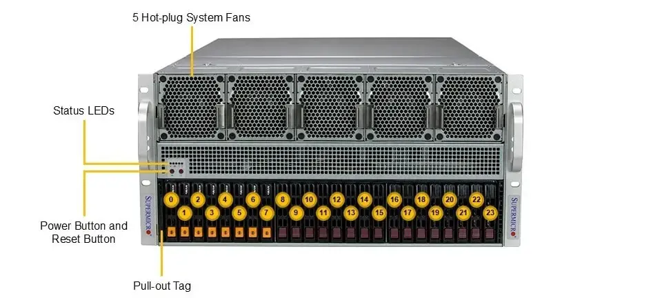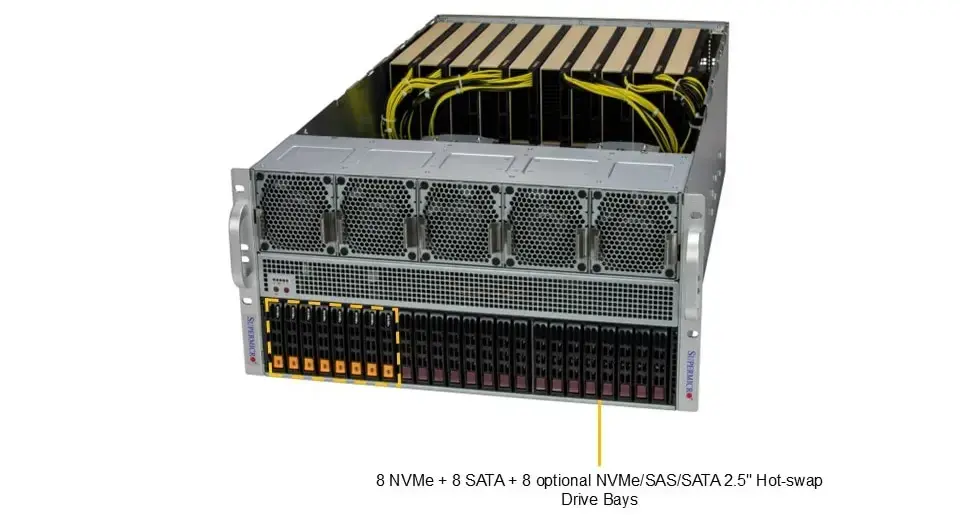 Диски По умолчанию: всего 16 отсеков 8 передних отсеков для 2,5-дюймовых накопителей NVMe с возможностью горячей замены 8 передних отсеков для 2,5-дюймовых накопителей SATA с возможностью горячей замены Опция A: Всего 24 отсека 8 передних отсеков для 2,5-дюймовых накопителей NVMe с возможностью горячей замены 8 передних отсеков для дисков NVMe* с возможностью горячей замены 2,5 дюйма 8 передних отсеков для дисков SATA с возможностью горячей замены 2,5 дюйма (*Для поддержки NVMe может потребоваться дополнительный контроллер памяти и/или кабели) 2 M.2 NVMe slots (M-key)