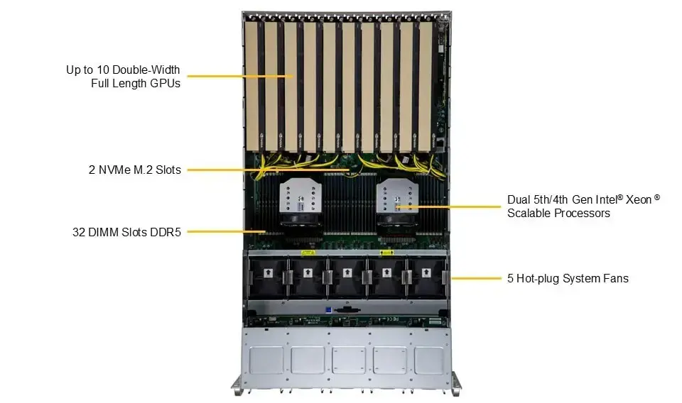 Rack 5U / 2 x Intel Xeon Gen4/5 / 32 x DIMM DDR5 8TB / 8 SFF / 4 PSU 2700W Titanium