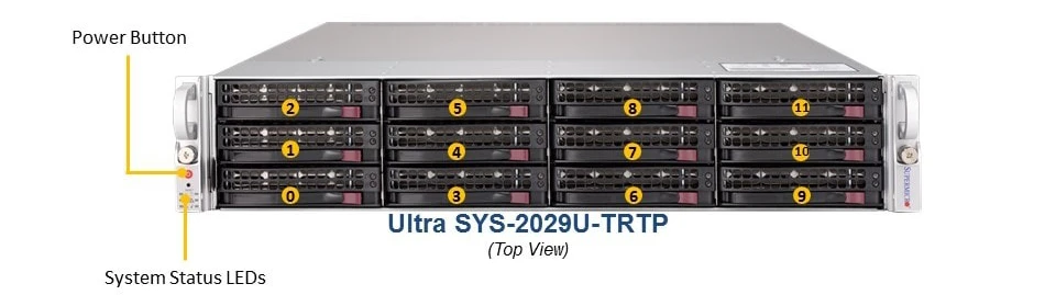 12 отсеков для 3,5-дюймовых накопителей с возможностью "горячей замены" 12 разъемов SAS3 через опцию AOC (4 гибридных порта - опция 4 NVMe) Примечание: требуется дополнительная карта памяти M.2 1 х M.2 PCI-E 3, 0x4 M-Key NVMe или 1 M.2 M-Key SATA3 (2240/2260/2280/22110) с помощью дополнительной платы riser card (см. список дополнительных компонентов) 2 х M.2 PCI-E 3, 0x4 M-ключа NVMe (2260/2280/22110) с помощью дополнительной платы AOC-SLG3-2M2 |