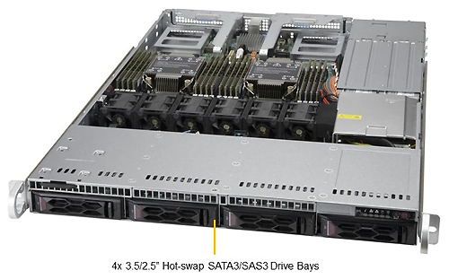 Rack 1U / 1 x Intel Xeon Gen3 / 16 x DIMM 6 ТБ 3DS ECC DDR4-3200: LRDIMM RDIMM Intel® DCPMM / 4LFF/ SFF SAS/SATA / 2 PSU уровня Platinum на 860 W