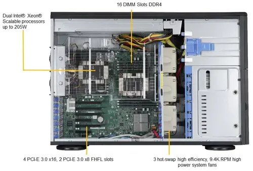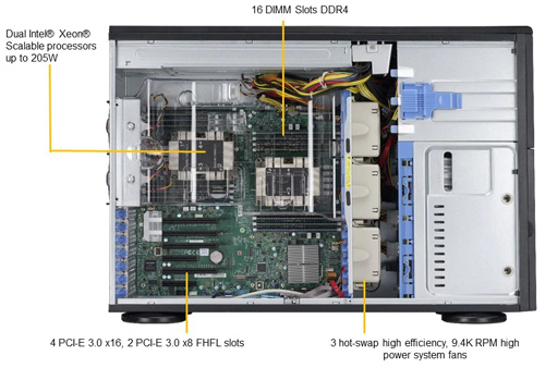 Tower / 1 x Intel Xeon Gen2 / 16 DIMM 4 ТБ 3DS ECC DDR4-2933 МГц / 8 SFF/LFF SATA3 / 2 PSU уровня Titanium 1200 W