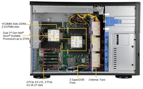 Tower / 1 x Intel Xeon Gen3 / 16 DIMM 4 ТБ PMem и DRAM / 8 LFF SATA3, 1 сл M.2 NVMe / 2 PSU уровня Titanium 1200 W