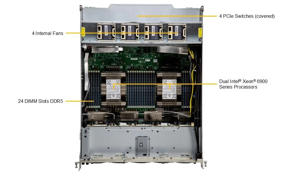 Поддержка GPU 8 × NVIDIA HGX SXM5 Поддерживаемые видеокарты: NVIDIA B200 SXM