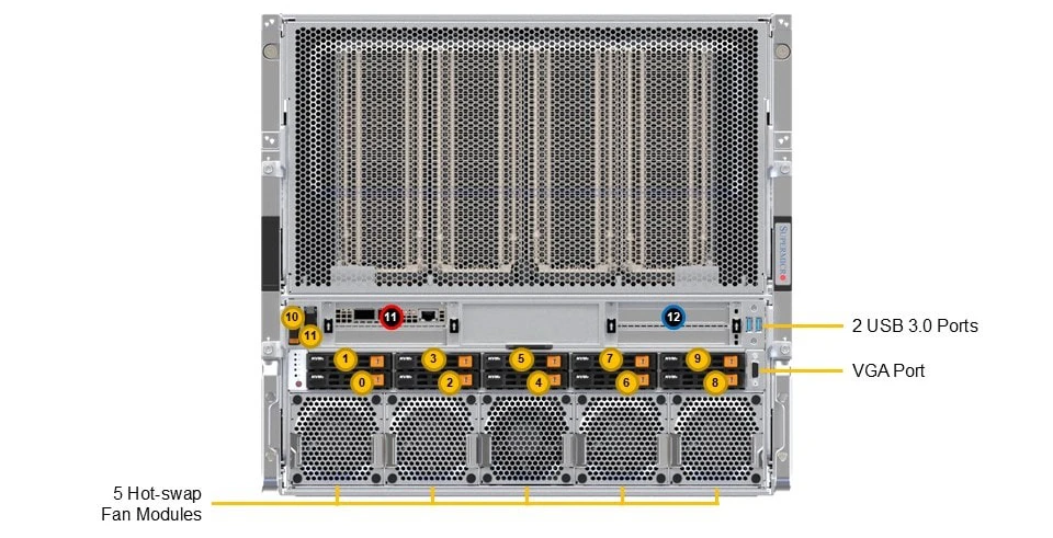 Отсеки для накопителей 10 × 2,5" PCIe 5.0 x4 NVMe 2 × M.2 PCIe 4.0 x4 NVMe