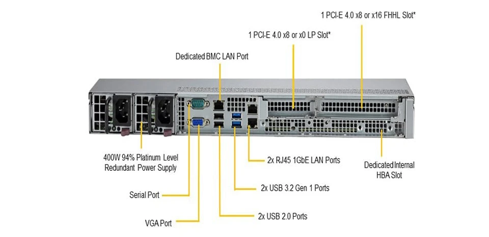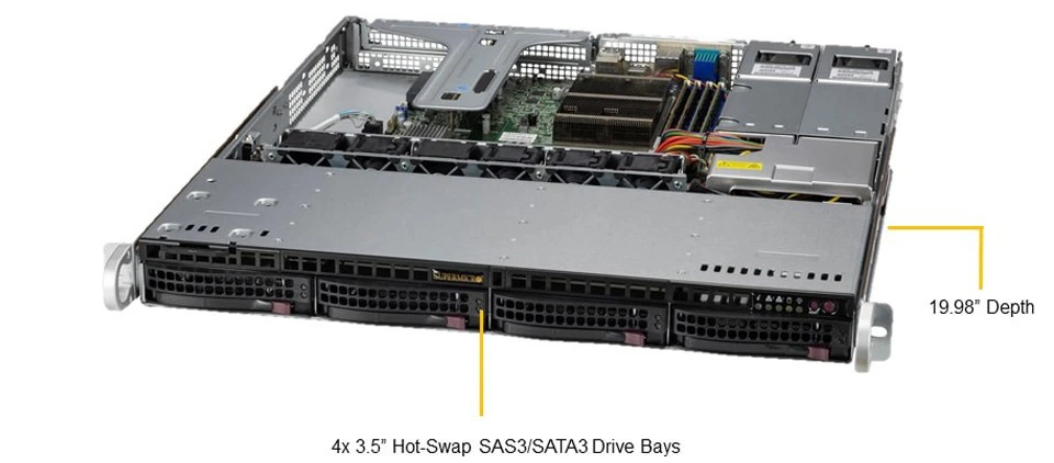 Rack 1U / 1 x Intel Xeon Gen2 / 6 x DIMM, 1,5 ТБ 3DS ECC DDR4–2933 МГц RDIMM LRDIMM / 4 x SATA3 LFF / 2 PSU 1U 400 W