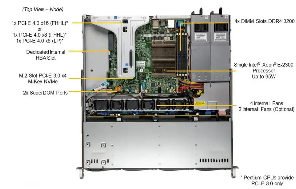 Rack 1U / 1 x Intel Xeon E-2300 / 4 DIMM DDR4 UDIMM 128 ГБ / 4 LFF 1x NVMe M.2 / 2 PSU Platinum 400W