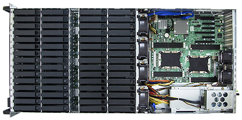 Внутренние: 60 x 3,5” с возможностью горячей замены (с загрузкой сверху) Внутренние: 2 x 2,5” с горячей заменой (15 мм, сзади) |